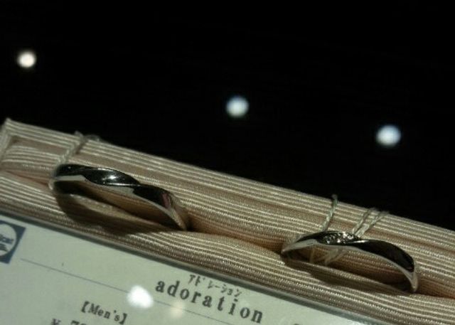 men'sもlady'sと同じデザインで、真ん中の石が無いタイプで、お揃い感があっていい感じです。