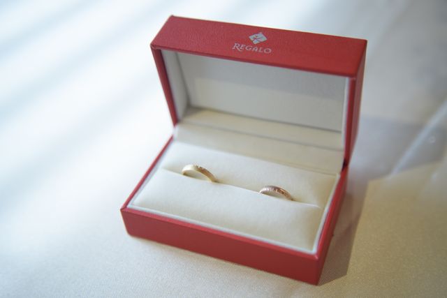 ちなみに、主人はゴールドで結構太め、私はピンクゴールドで少し太めを選び、自分たちの手に合う色、デザイン、サイズにすることができました。