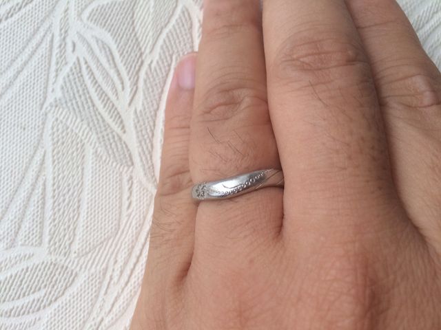 ハイビスカスの花と風をモチーフにしていてデザインが飽きがこない。プラチナを贅沢に使用しており、重量感と高級感があります。V字型なので、女性の指がきれいに見えます。つや消しのアクセントがおしゃれです。指にはめたとき、しっくりきました。