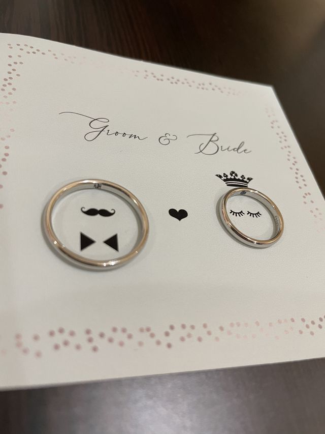 リングの内側にアクアマリンの石も埋められていてお気に入りです♡意味も素敵なところがお気に入りなのと、反対側に、名前を漢字で彫刻してくれるメーカーは数少ないとの事で、漢字でお互いの名前を彫刻して頂きました!