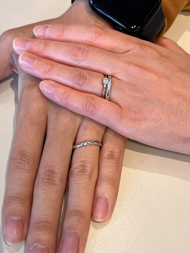 2人が選んだ指輪以外でも、何種類も出して実際に試着しながら選ばせて下さいましたので、自分達が選んだ指輪に心残りが無く、満足して購入する事が出来ました。担当のスタッフの方も、明るく元気に丁寧に対応して下さりましたので、2人の仲がより深まるきっかけとなりました。