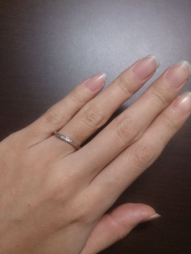 ブランドにこだわりはありませんでしたが、デザインはウェーブのかかって比較的シンプルな物をと思っていました。ウェーブといってもブランドを問わなければそれこそ何種類もあり、決めかねていましたが、私は指が細いためラインが他よりも細めのこちらの指輪にしました。2015年限定と言うのも決め手でした。