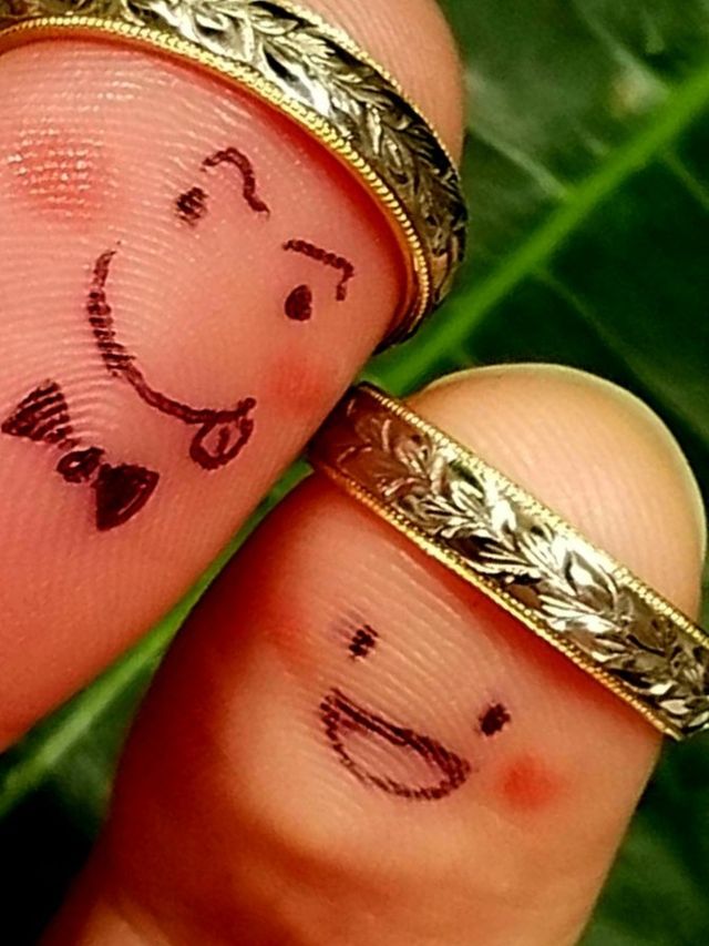模様が可愛く、刻む模様には意味があるので一生大事にできる指輪です。普段遣いがしやすいように表に石がないものを選びましたが、光に当たるとキラキラしてとても華やかです。幅もあるので手が大きい私にはちょうど良かったですし、旦那もお揃いのデザインですが、とても気に入っていて男の人も抵抗なくつけれる指輪でした。