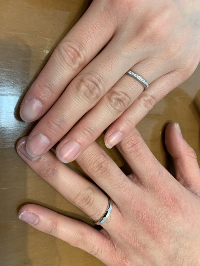 見た目が1番でした。何種類か拝見した中で、1番に目に付いたものにしました。特に、ダイヤモンドの輝き方がとても綺麗で、他の結婚指輪に負けないかがやきがありました。それと共に、普段使いしやすいシンプルさも気に入って購入に至りました!