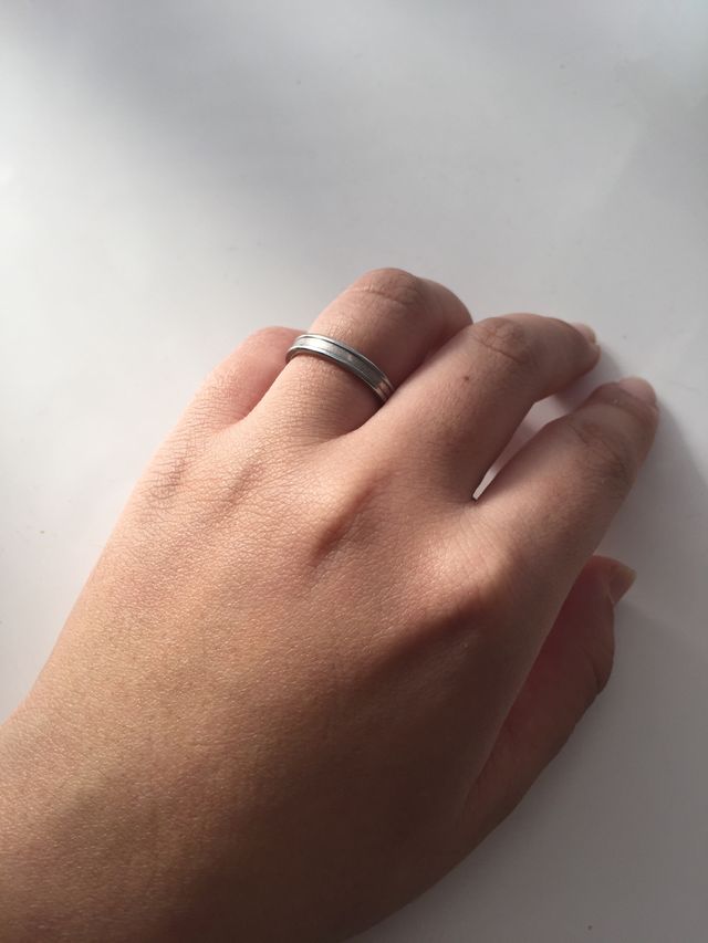 私が金属アレルギーなので、チタンの指輪を探していました。価格もあまり高額なのは買えないので、アレルギーにも優しくお財布にも優しくです。( 笑 )後は、結婚指輪はずっとつけておくものなので、邪魔にならないデザインがいいなと思っていたので、シンプルなこちらにしました。