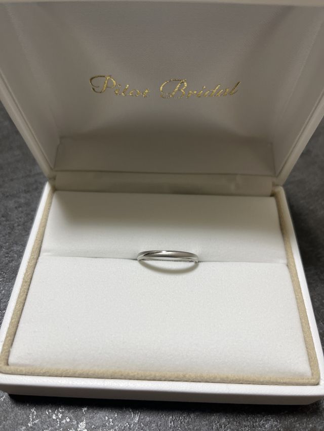 マッド加工で落ち着いたデザインの中でもラインがスッと斜めに入っていてかっこいい。使えば使うほど、味が出るような指輪のイメージでこれからも思い出と一緒に使い込んでいきたい指輪。内側の文字も密かに見えてかっこいい。