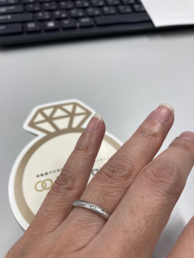 他店舗でも色々デザインみてきたのですが、特に夫婦ともにこだわりがあったわけではなく漠然としてたのですが、あんまり可愛すぎたり普段付け出来ないようなデザインはさけたいなと思ってたら