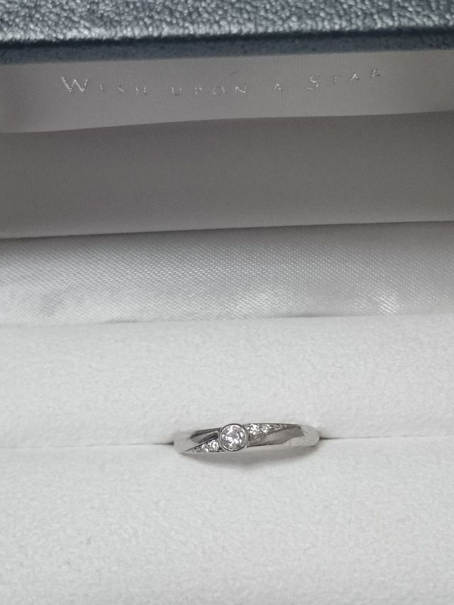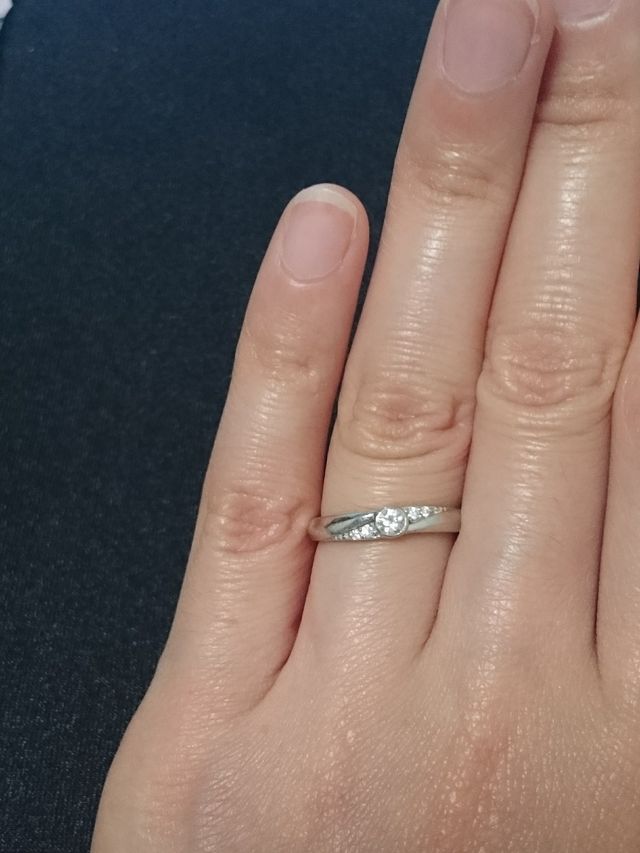 つけていても邪魔にならないデザインで、手をグーにしたときに違和感がない(痛くない)物を探していました。この指輪はダイヤモンドのカット独特で魅力を感じました。また、婚約指輪は買わないと決めていたのですが、この指輪は結婚指輪と婚約指輪を兼ねたブラッジリングというものだと聞いて、素敵だなと思い、これに決めました。