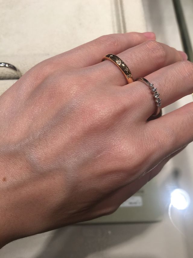指輪の厚みがあるのに着け心地も悪く無く、指あたりがつややかでした。厚みのある方が歳を重ねてもつけやすいです。、