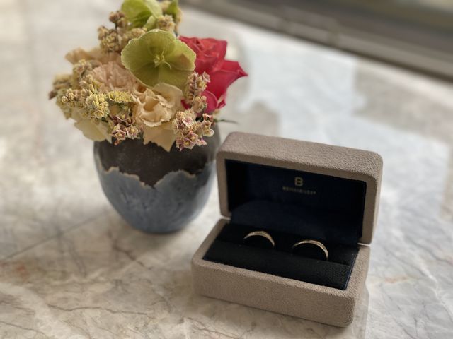 シャンパンゴールドでウェーブがここにしかないというところ。彼は今まで試着した中で1番フィットしたそうです。私もプラチナもよかったのですが、シャンパンゴールドの肌馴染みのいい色にとても惹かれました。ダイヤモンドも存在感はあるけど、シンプルさもあって良かったです。