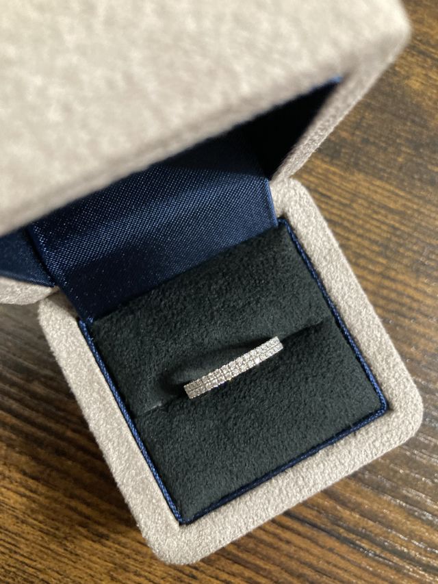 パヴェというよりは綺麗にダイヤが二列並んだエタニティデザインで、派手すぎず繊細な輝きがとても素敵で、本当に気に入りました。