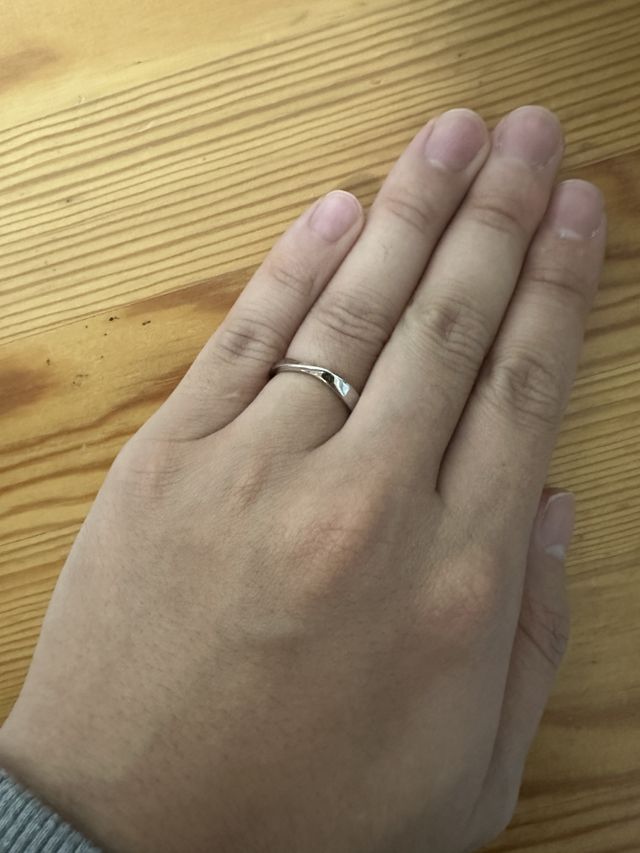 シンプルながらも曲線、カーブを描くことでオリジナリティが出ています。傷は生活している上でつくのですが、これもまた味ということで非常に満足しています。着け心地も非常に良く、ふと見た時に嬉しく感じる指輪です。