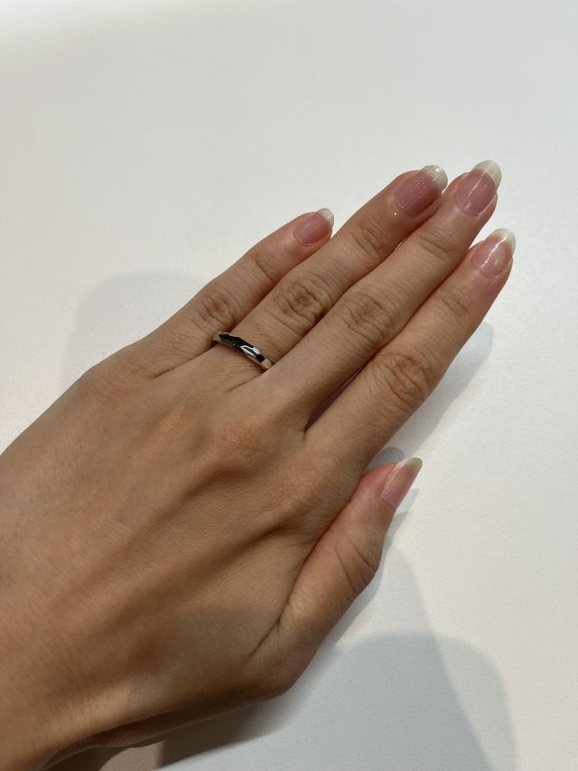 シルバー以外の色がある事も決め手でした。またシンプルな人と同じデザインではなく、中々見ないデザインだったのも決め手の一つです。指輪の幅も選ぶことができるので、いろんな方の好みに合うと感じました。元々ゴールドにするつもりですが、結果シルバーを選びました。