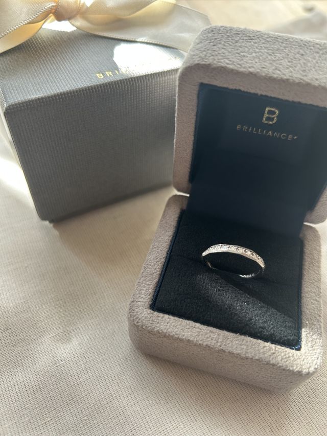 デザインはシンプルながら品があり、どんな服装にも合います。また人とかぶらないマットな質感がヴィンテージ感もあり、モードにもふれます。ハーフエタニティのダイヤも煌めきが綺麗で、高級感があります。マットな指輪の質感ともあいます。