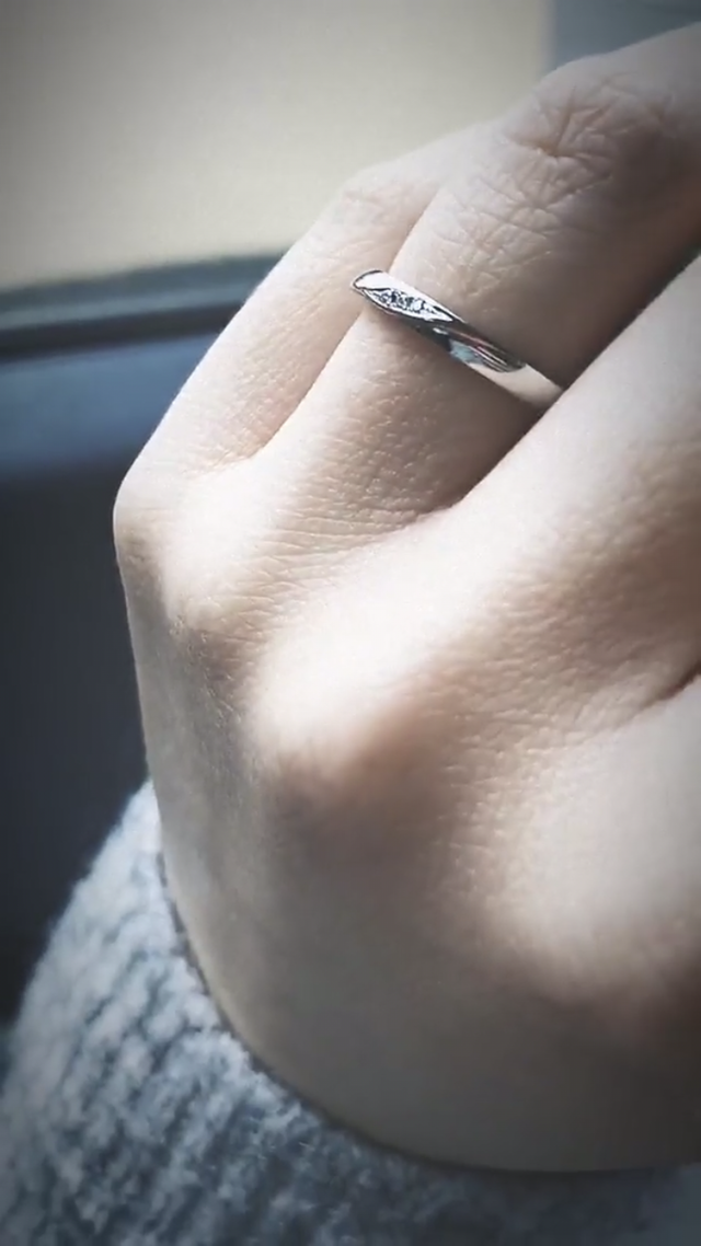控えめに輝くダイヤモンドが魅力的で選びました。リングもストレートではなく、ウェーブがかかったものでとても可愛いです。プラチナを購入しましたがそこまで値がはることもなくとても気に入っています。ペアではありませんがそこも気に入っているポイントです。