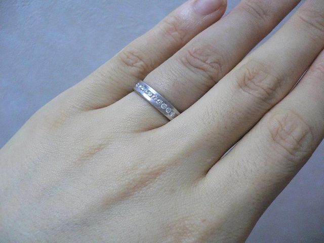 シンプルだけどダイヤが付いている指輪を探していました。シンプルすぎるものは華やかさに欠け、ダイヤが大きかったり数が多いと派手すぎてしまい、その中間がありませんでした。次に手に取ったのが今回の指輪。シンプルだけどかわいらしくダイヤが付いているのが決め手でした。