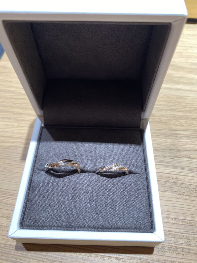 ピンクゴールドにしましたが派手すぎず、上質感があってとても素敵な指輪だと思いました。