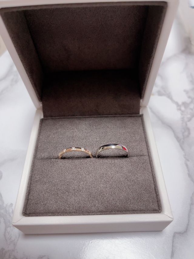 男性の指輪に関してもシンプルでおしゃれなデザインも沢山あり、ホワイトゴールドという色も初めて見たけどとても綺麗でした。