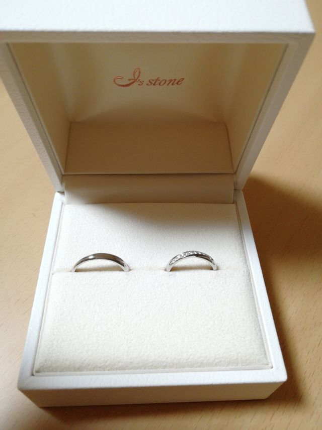 私はキラキラした指輪で、かつ他のお店で購入した婚約指輪と重ね付けできる指輪が欲しくて何度も試着して写真のものに決めました。