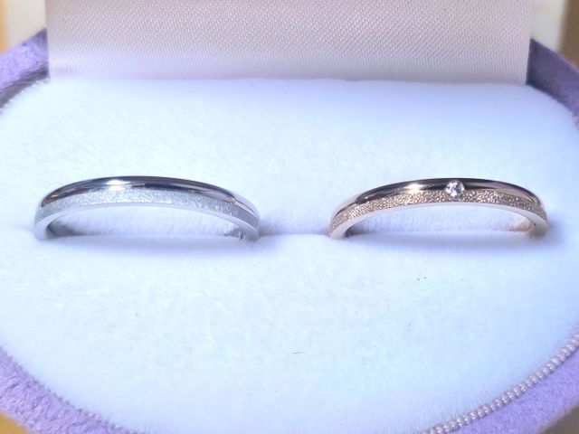 ピンクゴールドとプラチナがペアになっていて、お互いに好みにばっちりのものとなりました