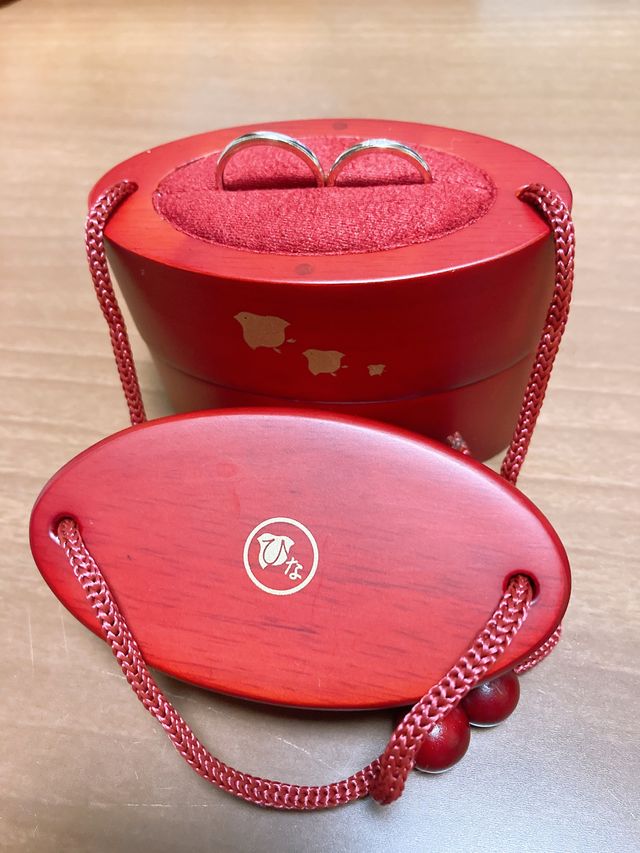 5年保証があり、サイズ直し等も可能な点は安心ポイントでした。箱も印籠をモチーフにしており、木でできていて温かみがありました。プラチナとゴールド、女性の方にはダイヤがついているので値段は覚悟しましたが、想定よりお財布に優しく助かりました。