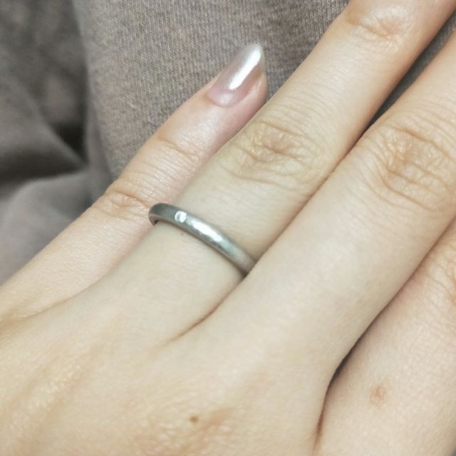 さまざなメジャーなブランドを見て回りましたが、男性でもつけやすいデザインというのが1番の決め手だと思います。旦那が気に入って購入しました。マット加工でツヤツヤではなく打った面が出ているのが美しいと思います。