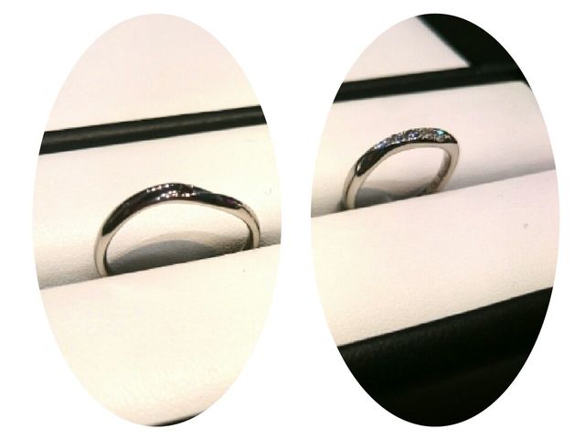 女性側のリングには大粒のダイヤが5石埋め込まれており、その輝きが他のリングと別格でした。