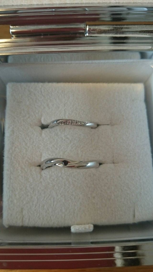値段も手頃でデザインも二人ともとても気に入ったので決めました。ウェーブのラインが指を細く見せてくれるのと、真ん中のダイヤのデザインもよかったです。