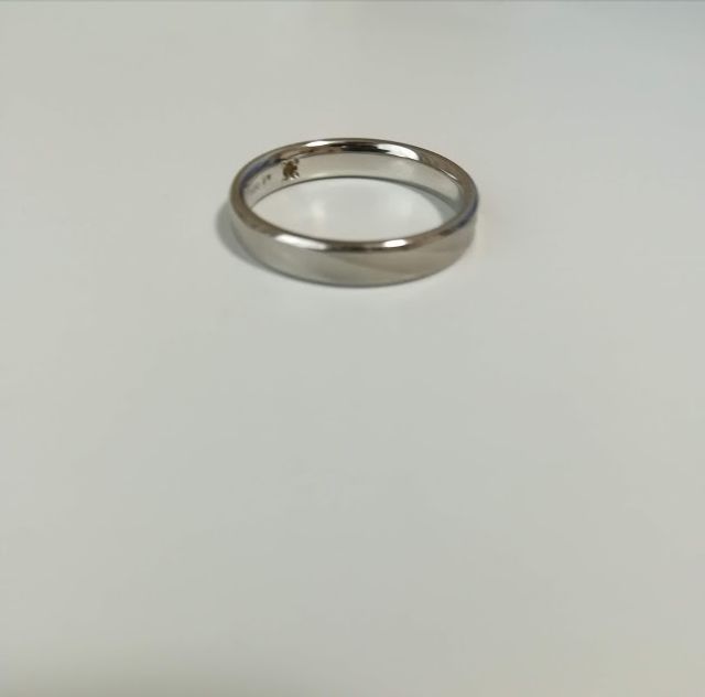 結婚指輪は普段使いをするものなのでシンプルなデザインなものと決めていましたが、どこかに置いた時に一目で自分のものと分かるようなデザインがどこかに入っていて欲しかったので、斜め縦模様の絵柄とつや消しのホーニングが大人っぽいデザインの指輪に決めました。