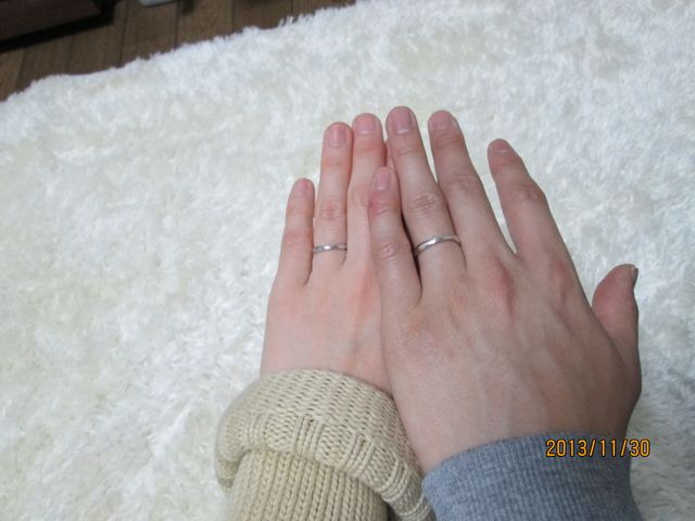 私たち夫婦がこの指輪に決めたのはデザインと金額です。お互いシンプルでゴツゴツしていないものがいいという意見が一致していたので、細めなこの指輪を選びました。シンプルだけどサイドから中央にかけてさりげなくクロスしているので角度によってデザインが変わって見える所が一生はめていくものなので飽きがこなくていいな思いこれに決めました。また、金額もほかの有名店より断然リーズナブルでした。