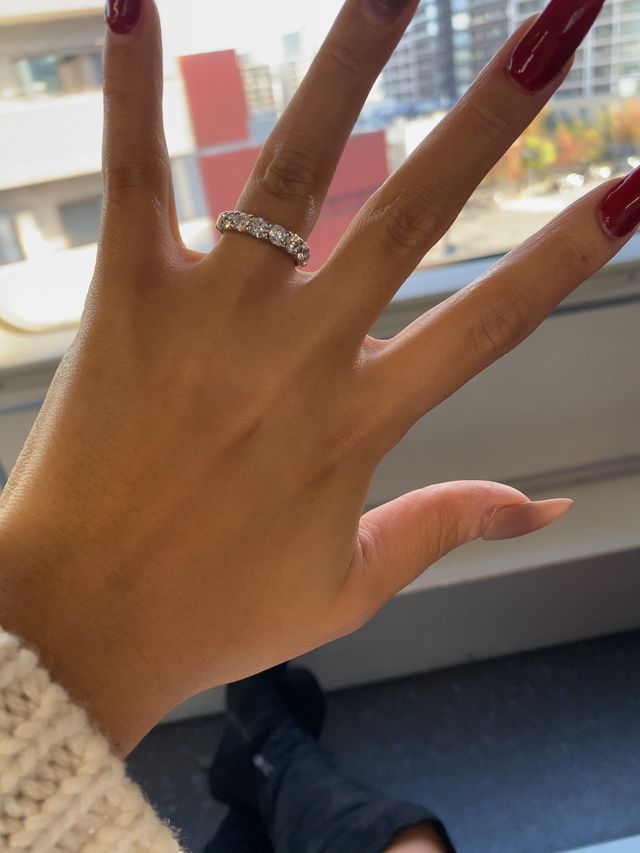 最初はダイヤモンドが大きすぎないか不安でしたが、今では馴染んできました。