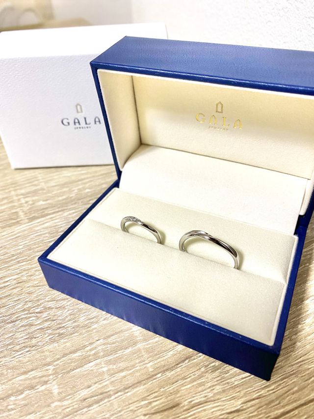指が綺麗に見えて、太すぎず細すぎずなところと、プラチナ950で強度もあり、シンプルすぎないけど主張もしすぎないちょうどいい華やかさのデザインが決め手でした。