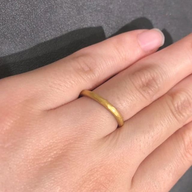 肌の馴染みが良く上品な色合いのゴールドがとても気に入りました。プラチナとの混合で迷ったのですが、自分の指にはゴールドのみの方が似合っていると思います。また使い込むほどに味わいが出るのも結婚指輪のコンセプトにピッタリですね。
