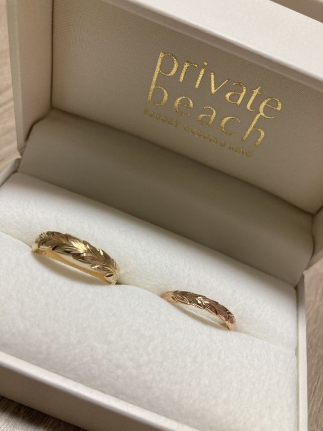 絵文字も指輪に入れれて、ウミガメやヤシの木などきちんと意味のある言葉をいられるので2人で相談した決めるのもいいかと思います。