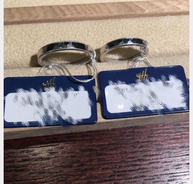 30本以上の指輪を見させてもらいましたが、シンプルなものから、個性的なものまで、どの指輪を選んでも後悔しないと思います。選んだデザインは、結婚指輪の代名詞的なデザインのミルグレイン、かつクラフト感が感じられる表面のキラキラとした加工がとてもお気に入りです。