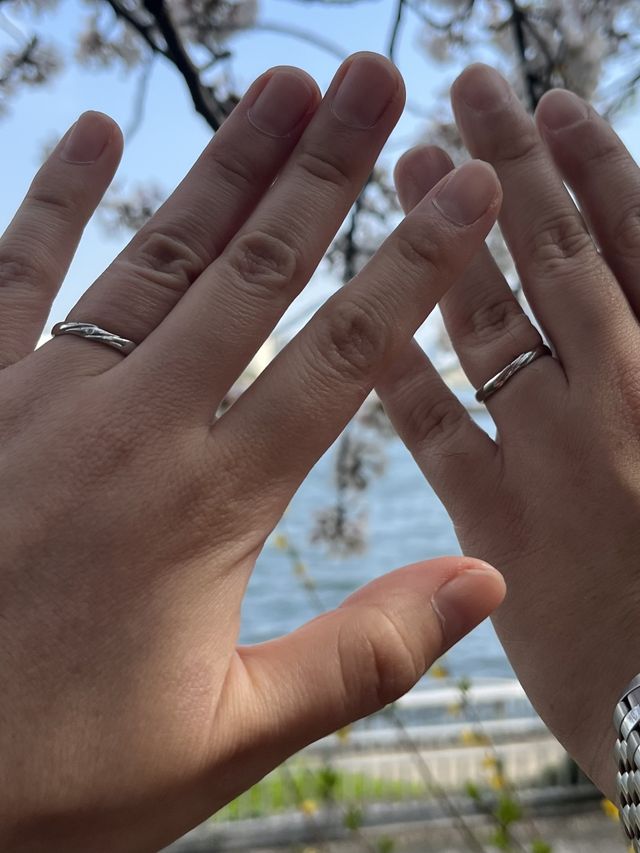 普段使いに馴染んで素敵なデザインです。結婚指輪をつけたくなかった夫も実際に試着していろいろなデザインを見て、このデザインならつけたいと言ってくれました。内側にはイニシャルも含め、記号なども無料で刻印してもらえました。
