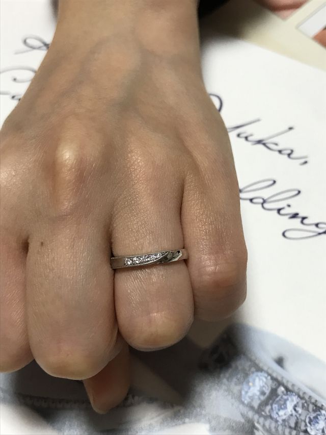 最初はダイヤが多いデザインでしたが自分の好みに合わせて少しダイヤの数を減らして頂きました、結果とても気に入ったデザインになりました。