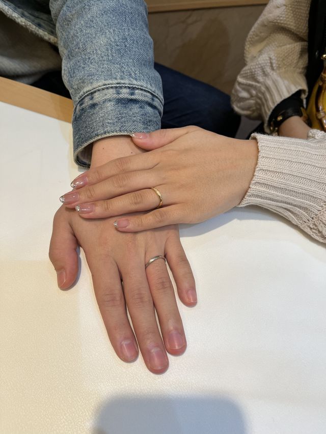 元々シンドバッドというお店は聞いたことがあり、パートナーの知り合いの紹介もあってこちらのお店にうかがってみたところ、とても指輪の種類も多くてかなり悩みました。普段身につけているアクセサリーがゴールドなので、指輪もゴールドに出来てなおかつダイヤも入れることで上品な仕上がりになったので大満足の仕上がりです。