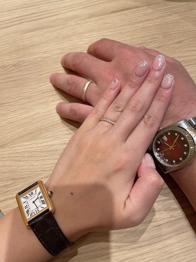 素晴らしいです!かたち、デザイン、大きさ、全てがベストでした!結婚指輪は高級な大手ブランドより、自分たちが1番気に入ったアイテムにしようと話し合った上で購入しに行ったので、即決でした!!!!本当よかったです!!