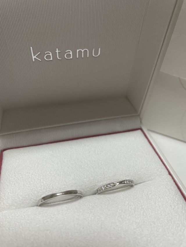 指輪の決め手の1番は、やっぱりデザインです。ペアだと見てわかるもので、シンプルだけどこだわりがあり、少し変わったデザインのものを探していました。様々な指輪を試したところ、2人とも一致してこの指輪が全てにおいて気に入りました。