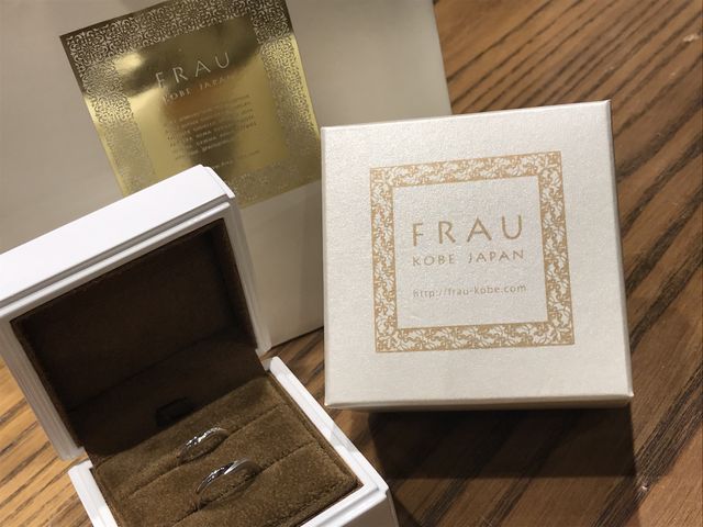 ウェーブのダイヤ入りのデザインは他のお店でも結構見かける定番デザインだったのですが、メンズはウェーブのプラチナのみのデザインばかりで正直検討はしていませんでしたがFRAUさんのリングはレディースのダイヤが入っている部分がメンズはマットな加工になっているのに主人がとても惹かれたのが決め手になりました。