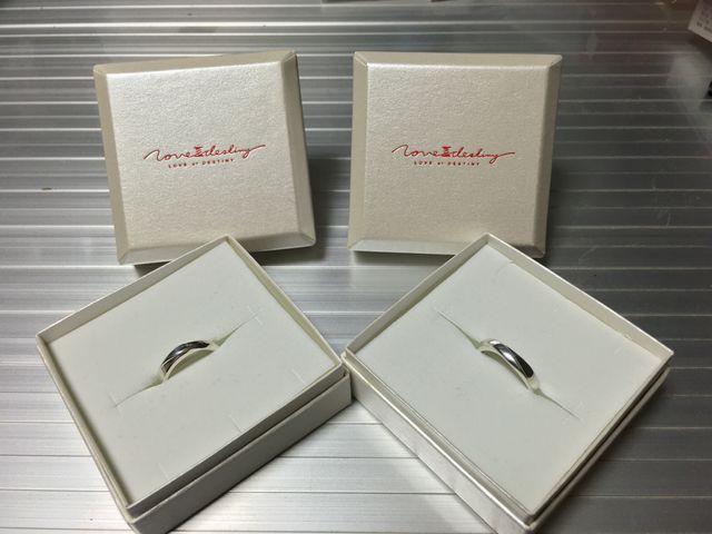 赤い糸が内側に埋め込まれているというところに惹かれました。年齢も若いので価格も満足でした。遠距離なので一緒に買いに行く時間が取れず通販での購入になり不安でしたが、箱や袋などの付属品にも傷などなく、満足です。