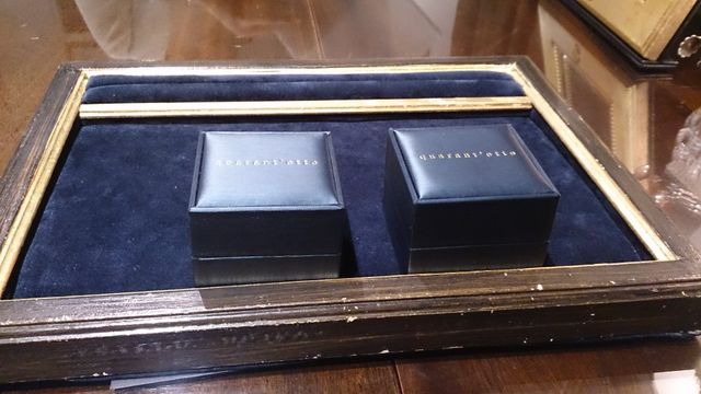 元々テレビでクアラントットのデザイナー(伏見さん)が特集されていたのを見たことがきっかけで、ファンになりました。1点1点にストーリーがあり、素敵だなと思っていたので結婚指輪はここにしたい!との思いが強かったです。セイタという商品でイタリア語で意味は絹、赤い絹の糸がくるくるとまかれたという物語と、細いものよりもどっしりとした、存在感のあるものを探していたのでこの商品に決めました。