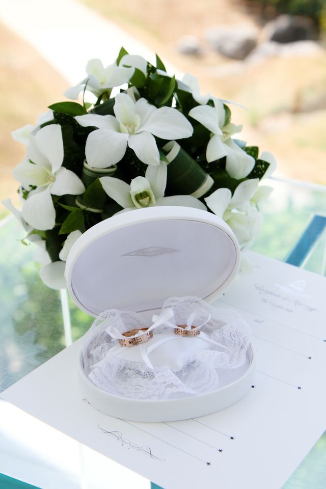 2人とも、ミンサー柄以外は考えられないと、ミンサー柄の結婚指輪が売っているお店を探しましたが、自分たちが良いと思うものが見付からず、オリジナルで作っていただきました。