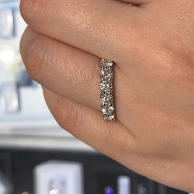 ハーフエタニティリングであり、リングの幅がしっかりとしているので華やかな印象です。キラキラと輝きダイヤモンドの存在感が圧倒的であり、まさに探していたリングと言った感じですね。付け心地も悪くなく、しっかりとフィットしています。