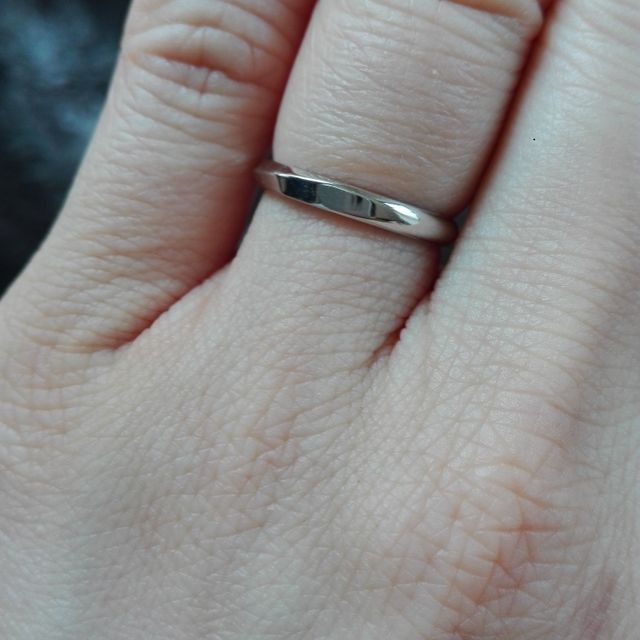 ダイヤモンドはついていませんが、少しウェーブの入ったデザインで、少し動きのある指輪でした。ダイヤはいらないけれど、シンプルすぎる指輪より、飽きがこないかな、と思い試着しました。指輪自身の輝きが魅力的でした。