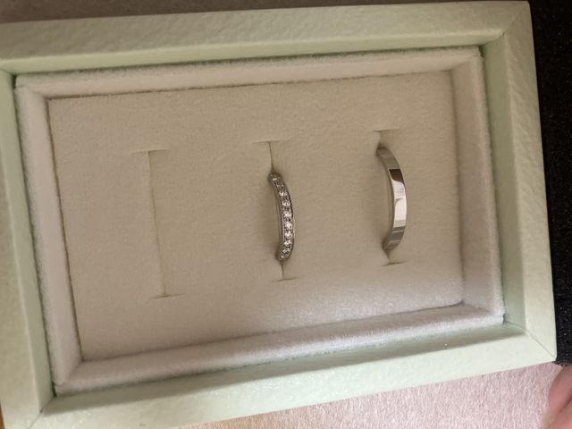 素材と値段と品質が良かった。また、たまたまお互いの誕生石が内側に埋め込まれていたので、運命を感じた。内側の石は変えられない仕様で、まさか2人の誕生石とは思わず、非常に驚いた。品質もプラチナがしっかりとしていて、資産になると思った。