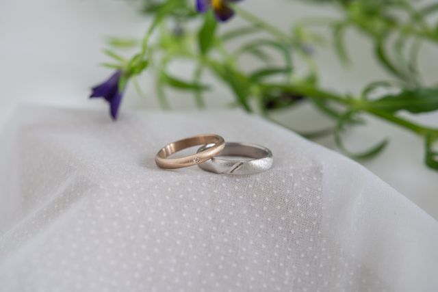 マットの質感や理想のデザインに仕上げてくださったところが一番の決め手です。妻は指輪の色をシャンパンゴールドにしていましたが、色味や風合いも含め大満足しています。あとは、ご担当者の気遣いや完成時に受け取った際のお写真も素敵で、ここにして良かったなと心から感じています。