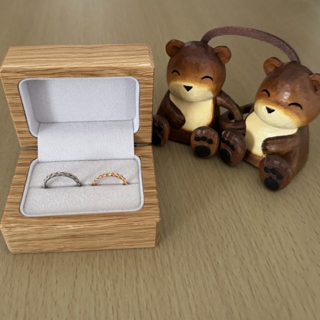(私は力仕事もあるので強度の強いピンクゴールドを、旦那はプラチナを渋くした感じのグレイッシュゴールドを選びました)