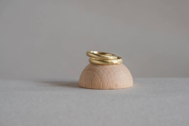 たくさんの実物を見ながら選べたので、イメージをしやすかったです。また、複数のデザインを組み合わせることができ、自分たちだけのオリジナルの指輪を作れたので、とても満足しています。鎚目とシンプルなノーマルのハーフのデザインがお気に入りです。、